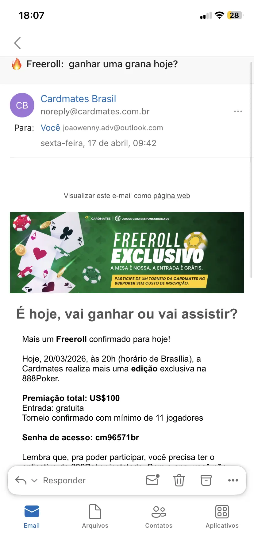 recebi a senha do torneio de hoje no 888Poker, mas da incorreta.