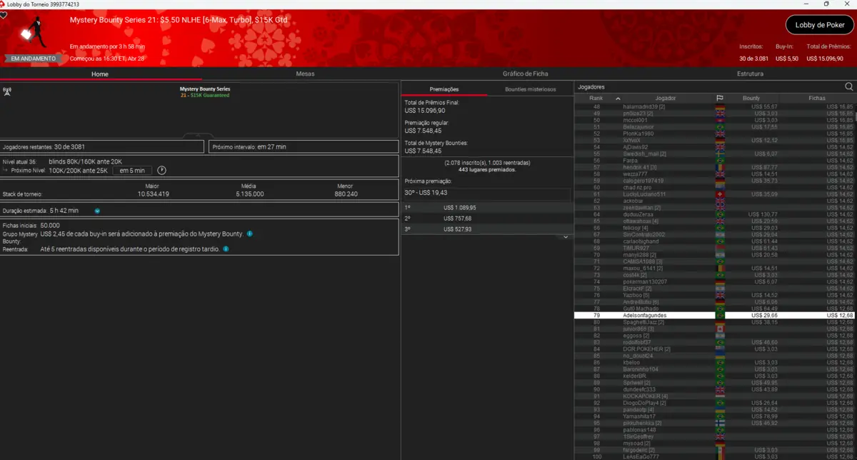 Muito bom, esses torneios com field pequenos são bem melhores de explorar estrategicamente. Continue Moendo!