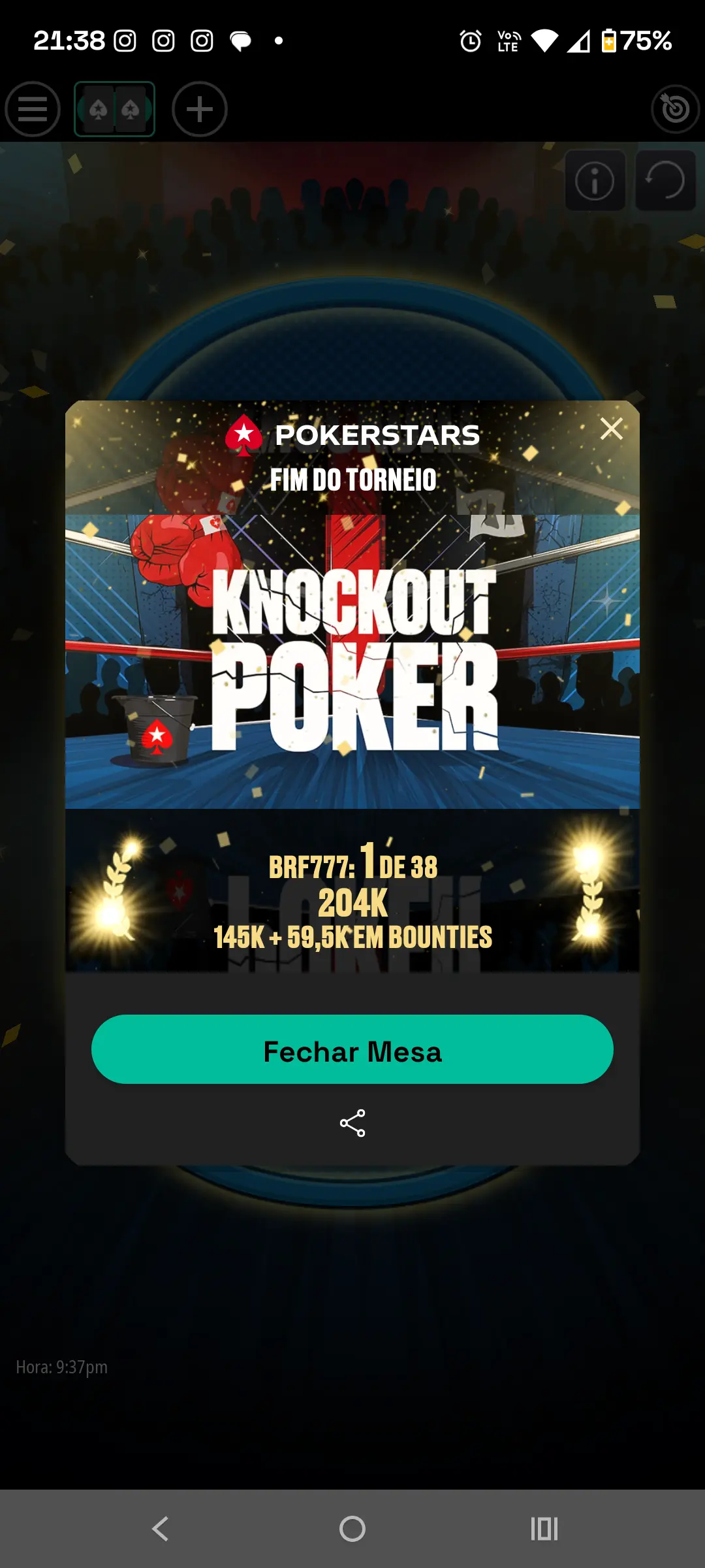 Irei postar aqui agora um que joguei a poucos minutos atrás e ganhei 2 Bounty de $10.00 dólares cada e 2 de $0.25 . Foi um belo prêmio + $3,00 por ter ficado em 2° lugar!!!