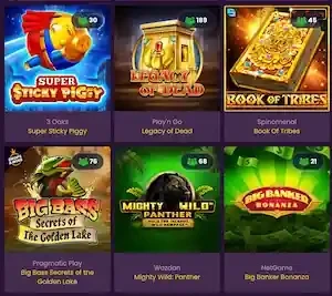 | Slots | Mystic Charms (TrueLab), Book of Dead (Play’n GO), Sugar Rush (Pragmatic Play), Triton’s Realm (GameBeat), Wild Spin Deluxe (Platipus), Lime Time (Popiplay), Coins of Ra (Betsoft Gaming) e Gates of Anubis (Popiplay) | ![]() |