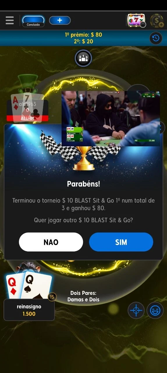 Bastante sorte no jogo, olha o par de QQ aihaihaiahiahaiahih