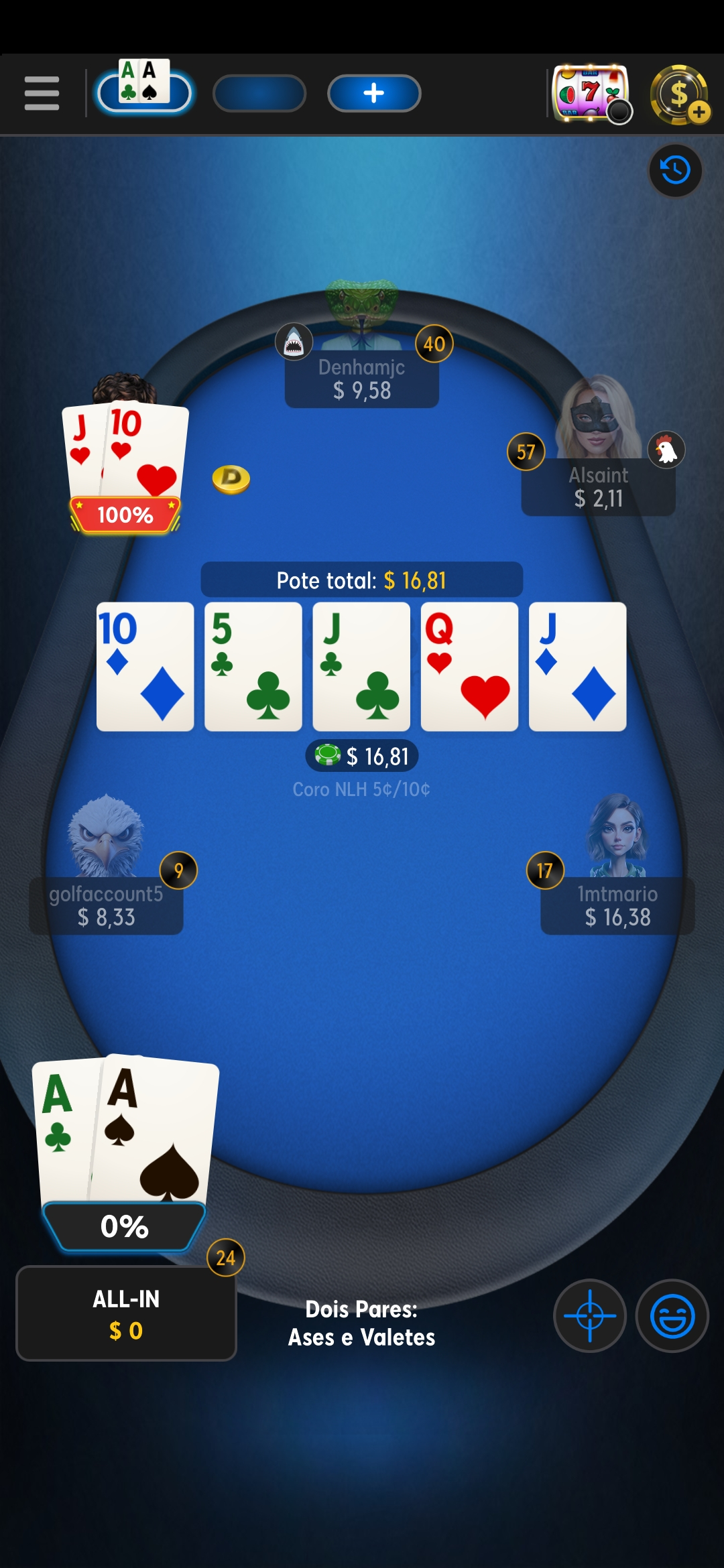 Perdi um pot de 16 dol e zerei a banca mais uma vez, só não estou puto porque já saquei os 50tinha desse mês e já aconteceu de eu zerar outras vezes e consegui recuperar jogando torneios free, dessa vez não vai ser diferente!! 🫡