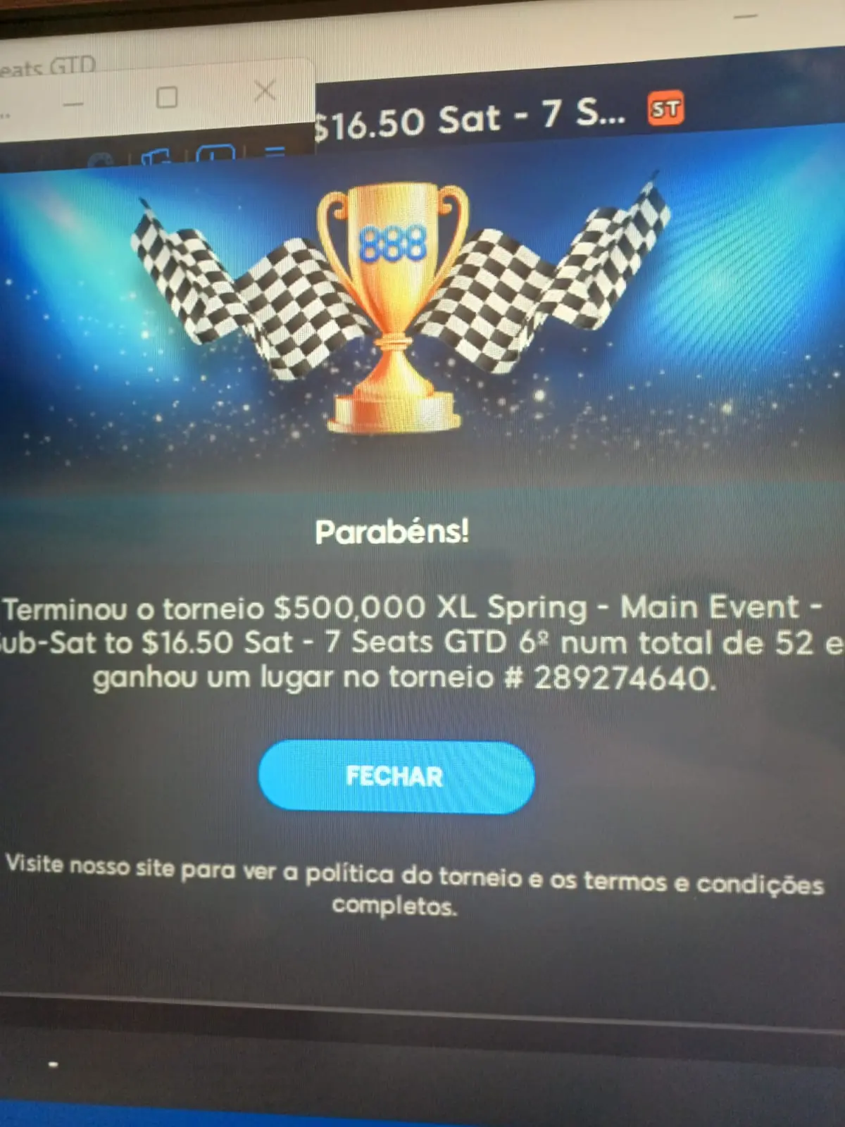 Passei por 3 satélites consecutivos pra ganhar a vaga do 500,000 XL Springs do 888, que acontece dia 10 do mês de maio.