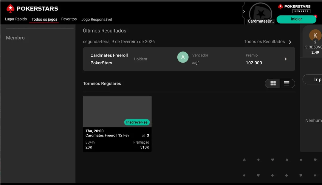 Cardmates Freeroll PokerStars – 12 de fevereiro