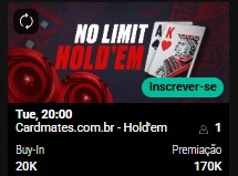 ⏰ Horário: 20h (Horário de Brasília) Formato: NL Hold’em