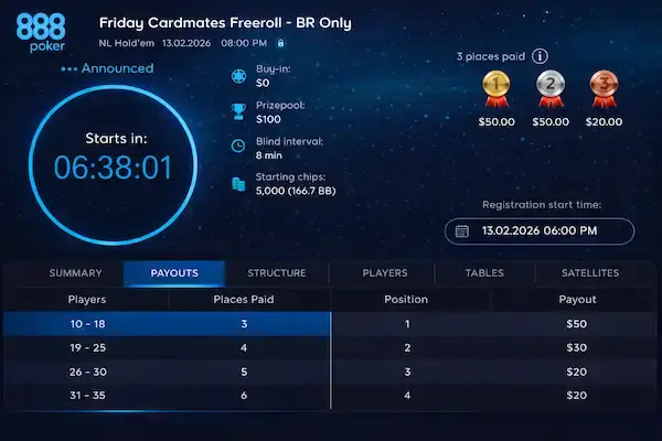 Friday Cardmates Freeroll 888Poker