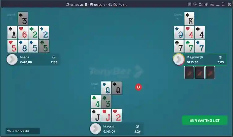 A TonyBet Poker se tornou a primeira sala de poker do mundo abertamente focada no poker chinês. Com o passar do tempo, as disciplinas mais populares de poker, como o Holdem e o Omaha, foram adicionadas ao lobby.